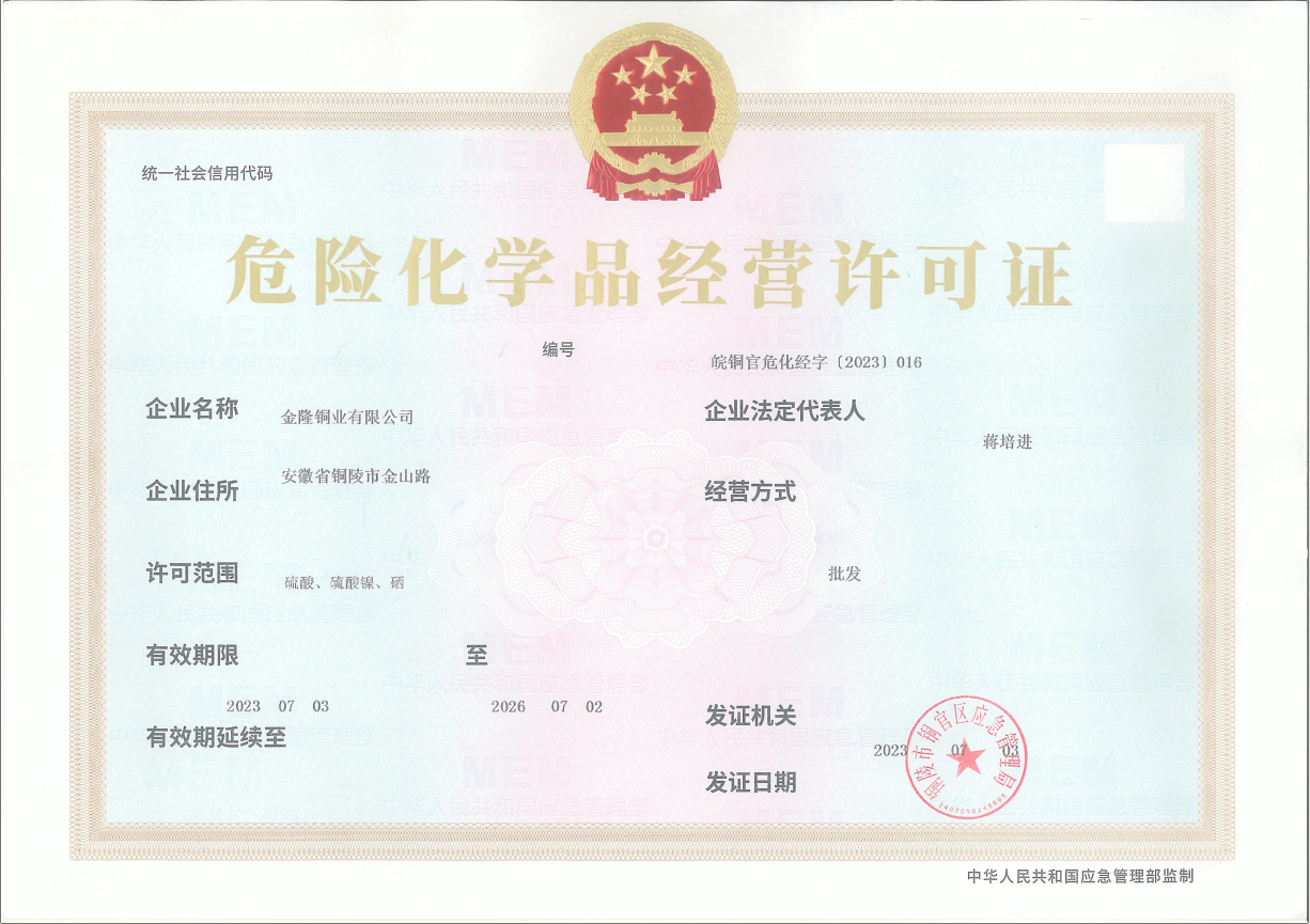 危險化學(xué)品生產(chǎn)銷售企業(yè)相關(guān)資質(zhì)